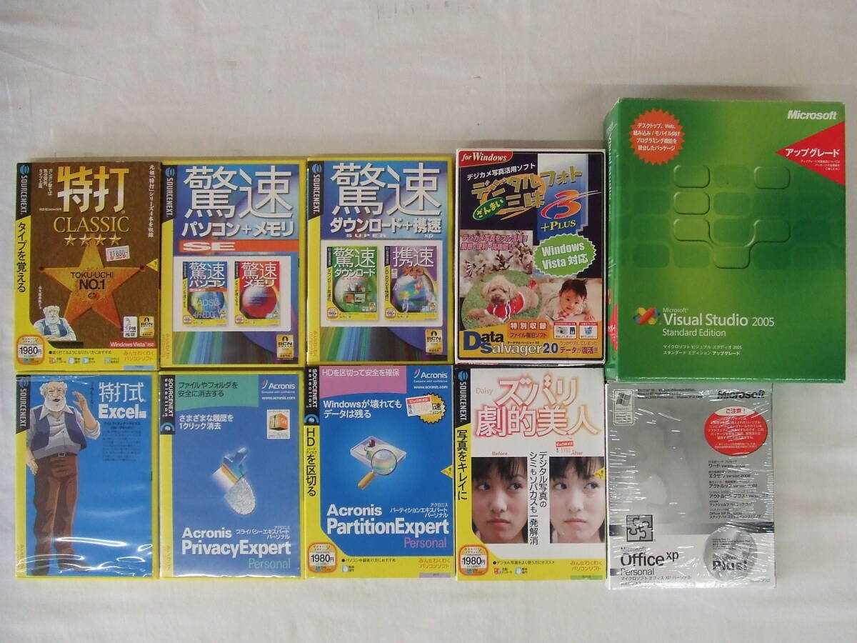 > PCソフト 10個 Visual Studio2005 OfficeXP ズバリ劇的美人 アクロニスパーティション 驚速 デジタルフォト三昧 ジャンク まとめ
