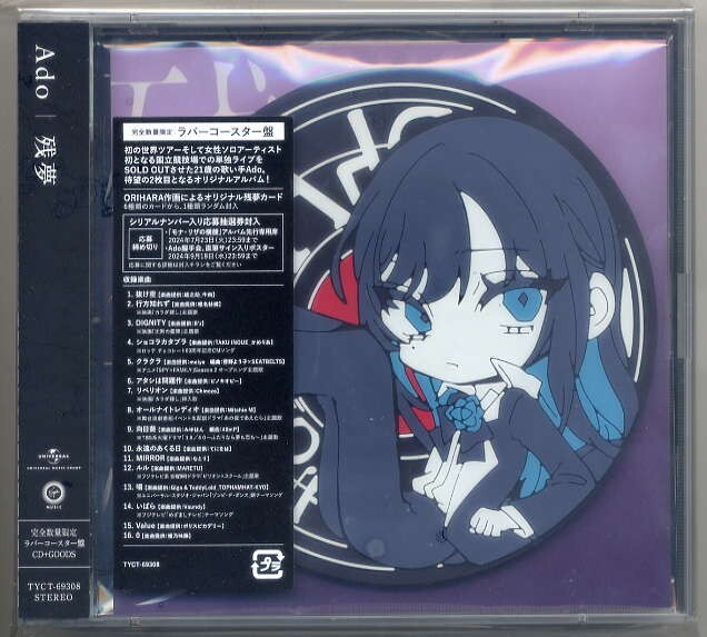 - ☆Ado アド 「残夢」 CD+ラバーコースター+トレーディングカード 完全数量限定盤 : ラバーコースター盤 新品 未開封