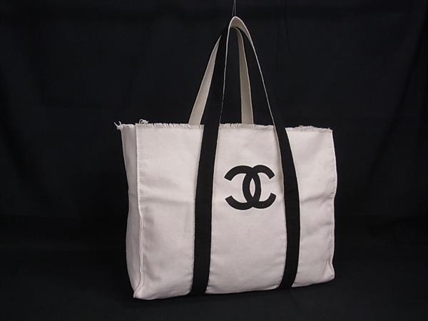 > 1円 ■美品■ CHANEL シャネル ココマーク キャンバス ハンドバッグ トート ショルダーバッグ 肩掛け アイボリー系×ブラック系 BM9804