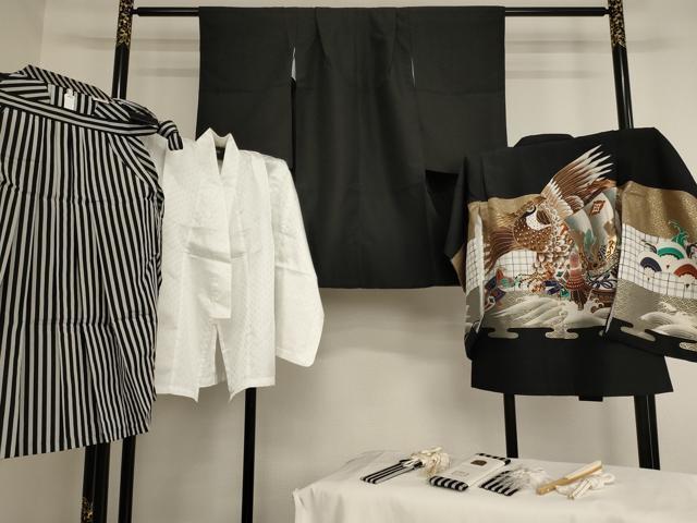 - 平和屋着物[]七五三 男の子 5歳 祝着・羽織・長襦袢・行灯袴・小物セット 鷹宝船文 黒地 金彩 洗える着物 AAAU5372ja