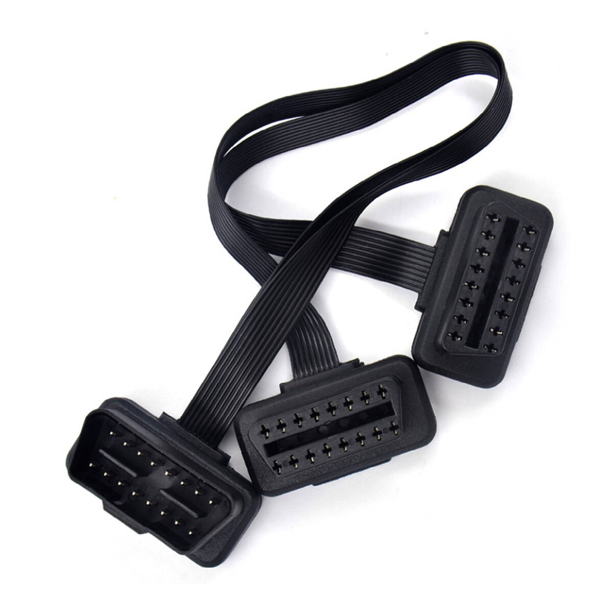 > OBD変換ケーブル 分岐ケーブル 延長ケーブル フラットケーブル 16ピン 車両診断 オス-メス 曲がりプラグ 30cm ブラック 1本セット ;J3846;