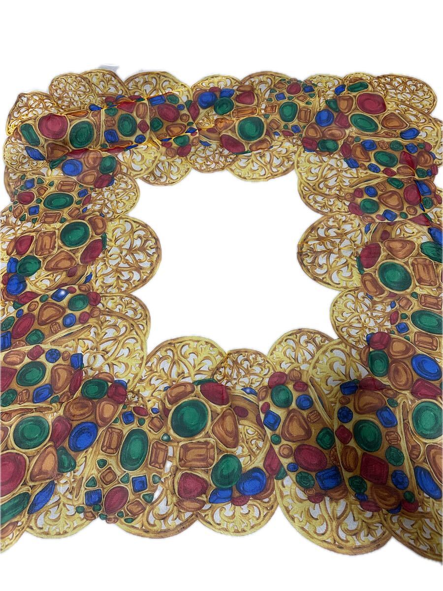 - CHANEL シャネル シルク100% 大判 スカーフ グリポア 宝石柄 アイボリー