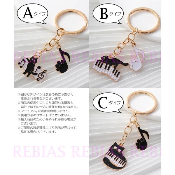 - 送料無料 【Aタイプ】 にゃんこ&ぴあの キーホルダー cat piano キーリング 音符 プレゼント チャーム