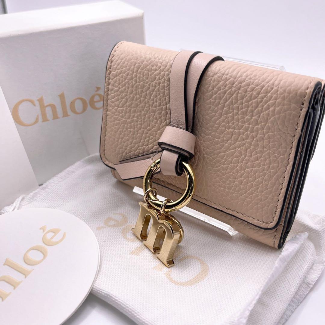 - 美品 クロエ 3つ折り財布 ミニトリフォールド アルファベット ピンクベージュ