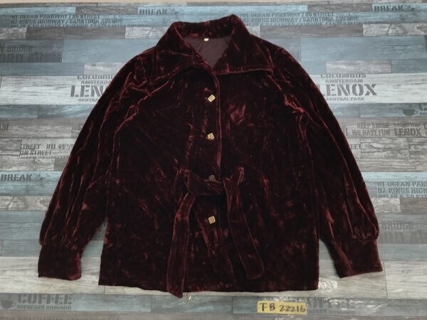- レディース 国産品 アセテート75% 前ボタン ベロア調ジャケット 13号 赤