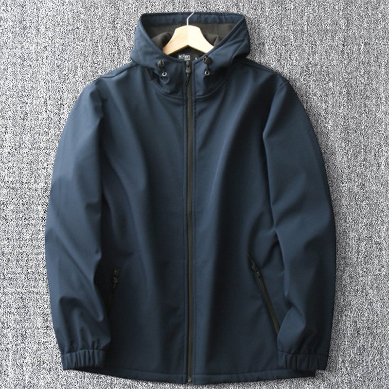 > 新品 マウンテンパーカー メンズ フード付き 防風 撥水 アウトドア 秋冬 裏起毛 ソフトシェル 厚手 ジップ ジャケット 濃紺 T7017-L
