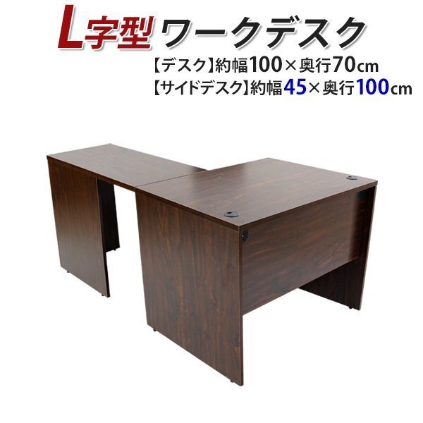 > 送料無料 ワークデスク L字型 約W100×D170×H73.5 幕板 ゲーミングデスク L字デスク L型 サイドデスク 連結 オフィス 右用 ウォールナット