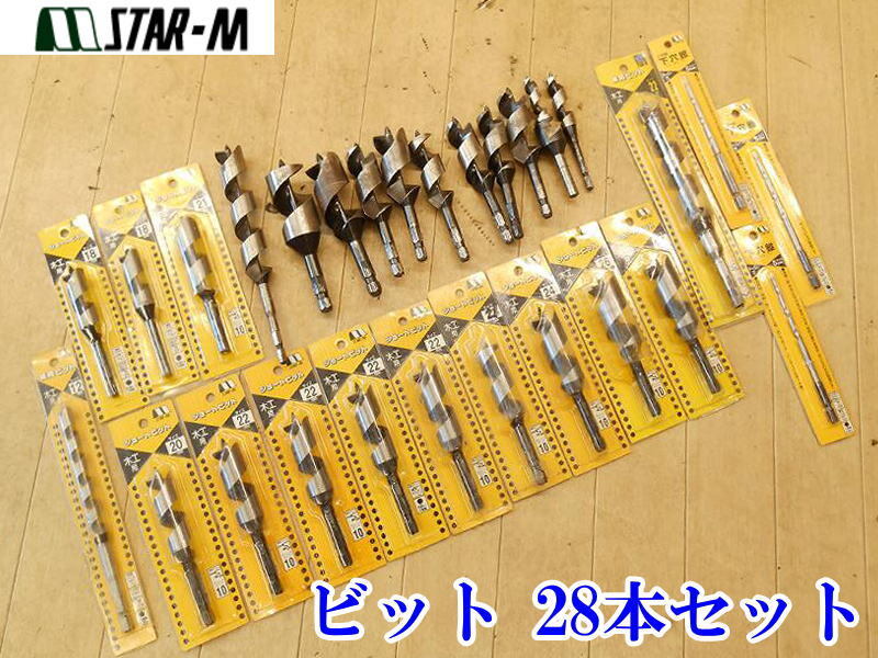 > 〇 STAR-M スターエム ショートビット 28本セット 木工用 12/18/20/21/22/24/26mm 下穴錐 5mm 兼用ビット 六角錐 ドリル インパクト 穿孔