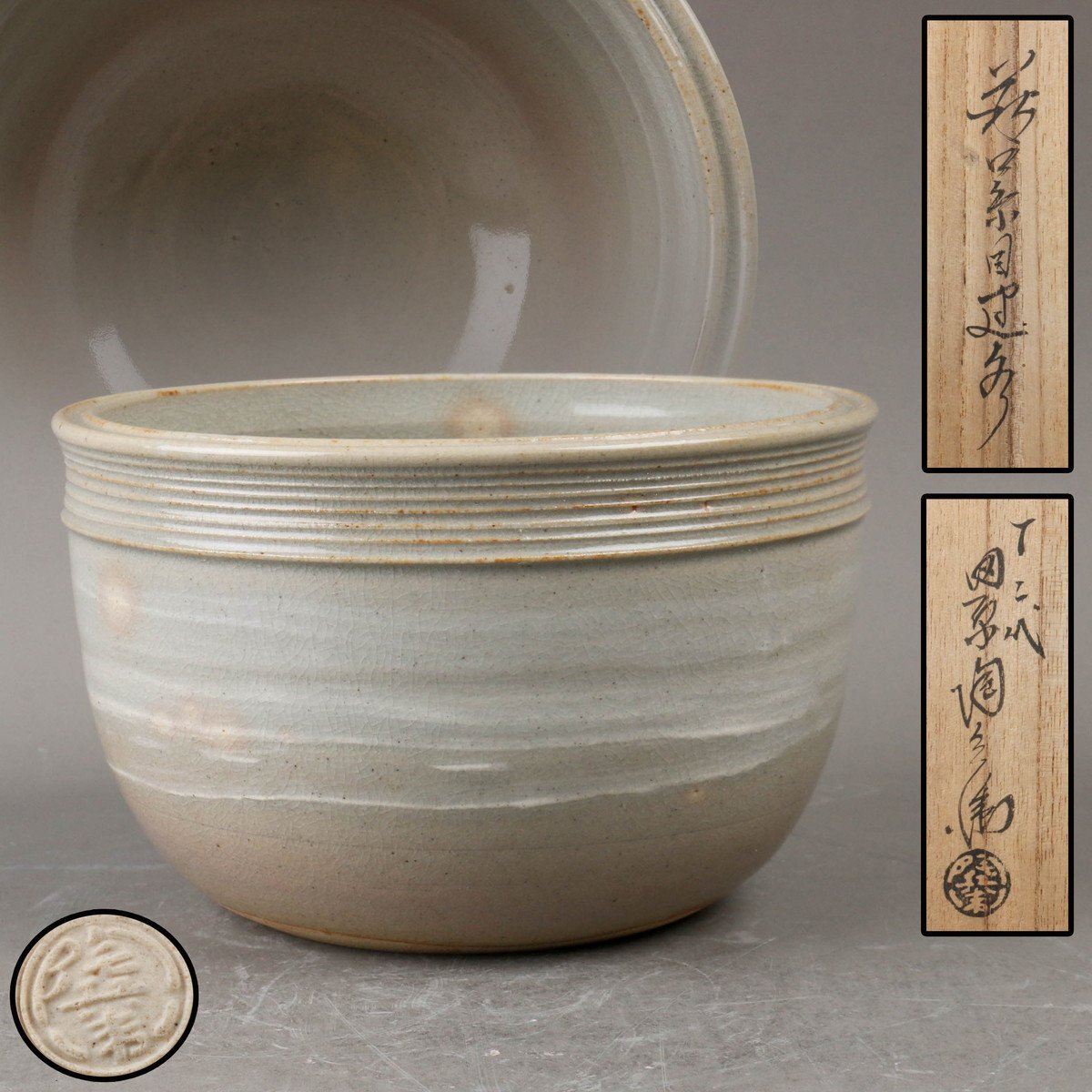 【SAG】十二代 田原陶兵衛 萩口糸目建水 共箱 茶道具 本物保証拍卖