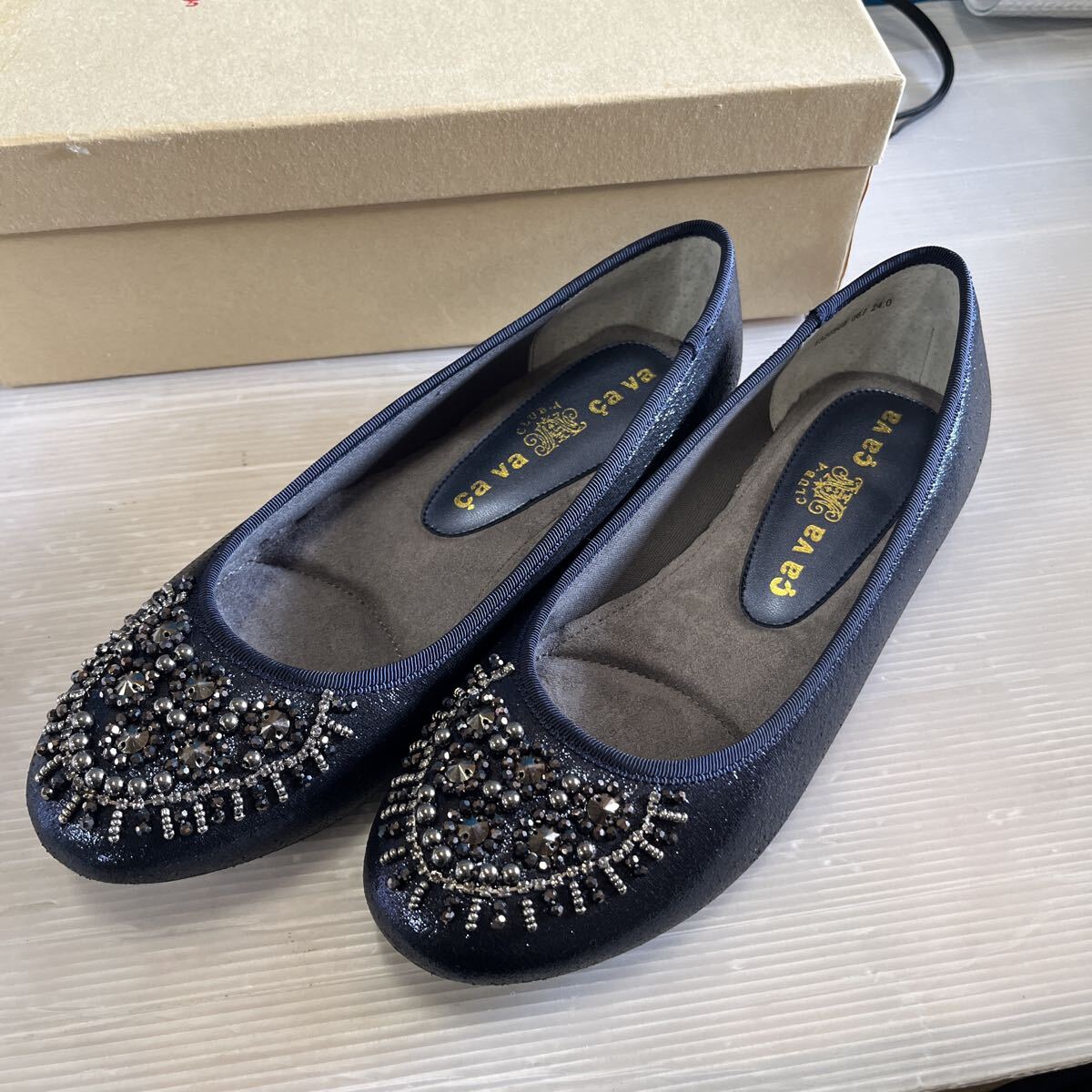 > パンプス ca va ca va CLUB・A ブルーグレー バレーシューズ 24cm ビジュー装飾 箱入り 未使用 保管品