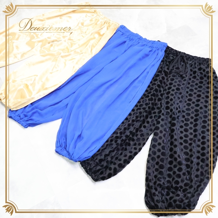 - ベリーダンス 衣装 ズボン ハーレムパンツ まとめ売り 全3点 セット ゴールド系 ブルー系 青 ブラック系 黒 アラジン レッスンウェア 練習