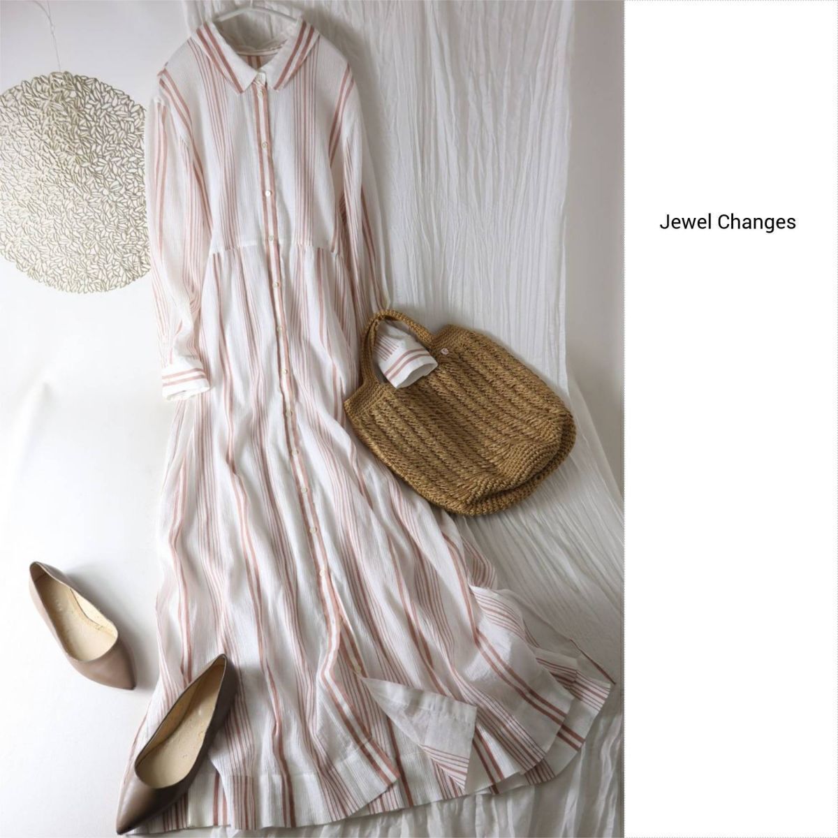 > ユナイテッドアローズ/Jewel Changes☆洗える シアーストライプ シャツワンピース 38サイズ☆E-M 4932