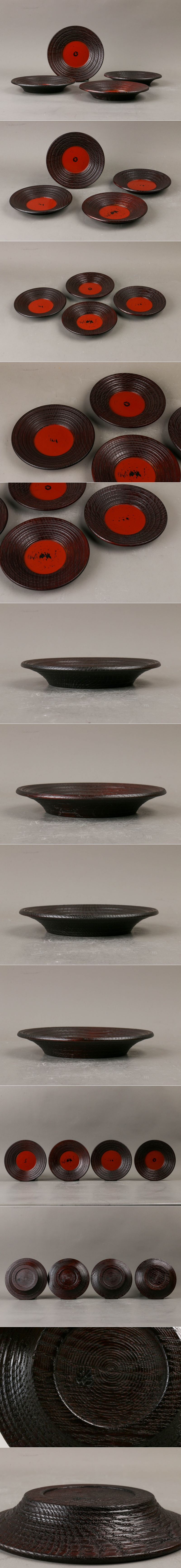 【SAG】村瀬治兵衛 沢栗中根来茶托 四客 漆器 茶道具 本物保証拍卖