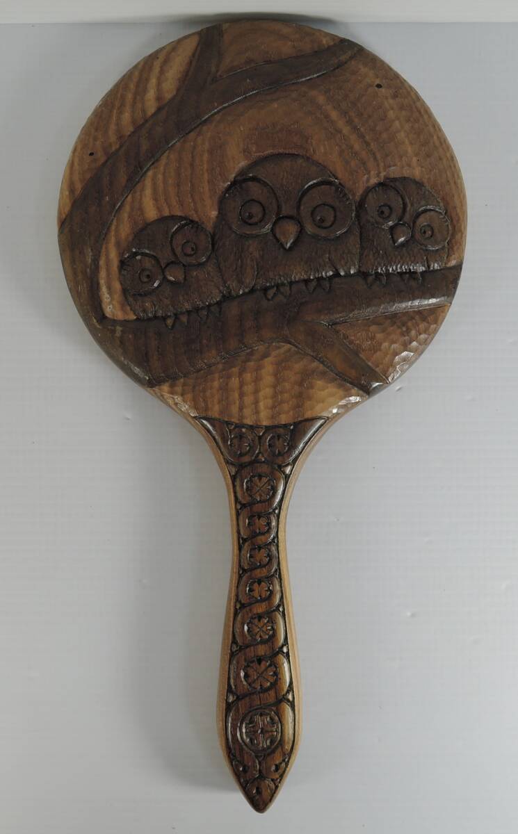 - ☆T09■木彫り フクロウ・梟 手鏡・ハンドミラー■