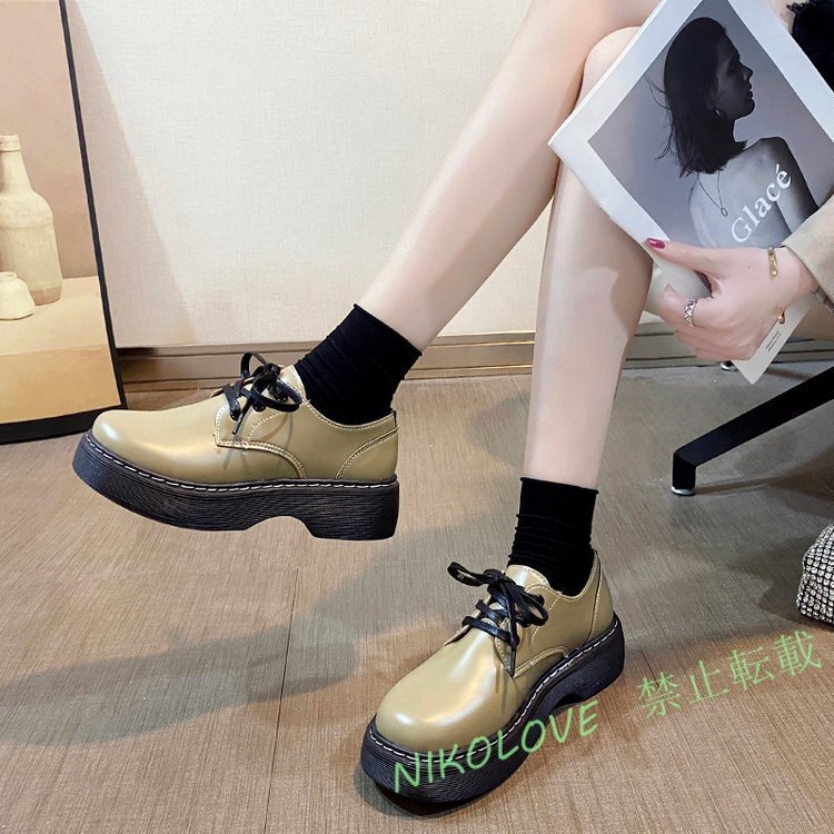 > ☆新品 オックスフォードシューズ フラットシューズ レディース シューズ ローカット 厚底 幅広 撥水 防滑 軽量ゆったりライトグリーン