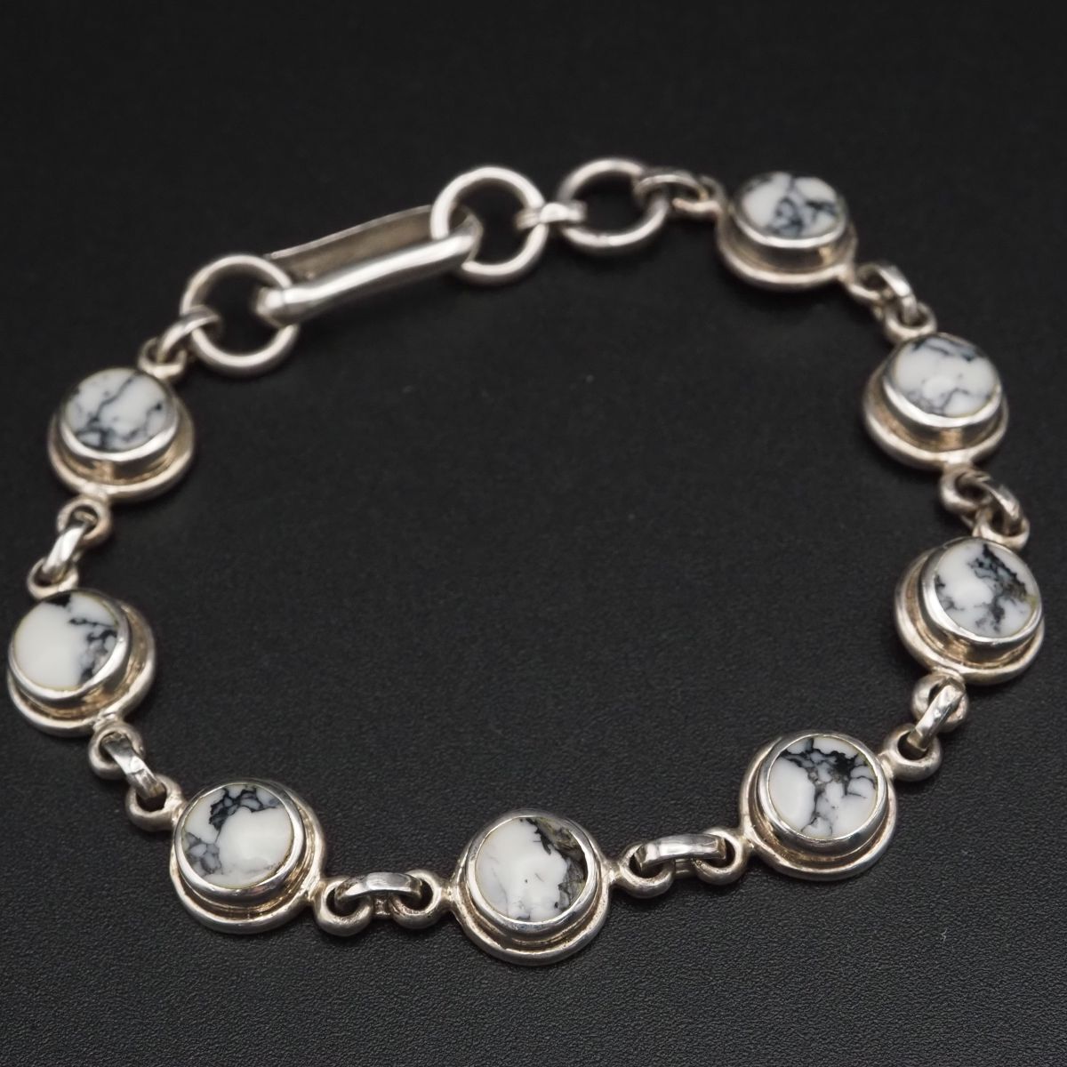 - H592 ホワイトターコイズ風 ブレスレット インレイ デザイン シルバー ヴィンテージ