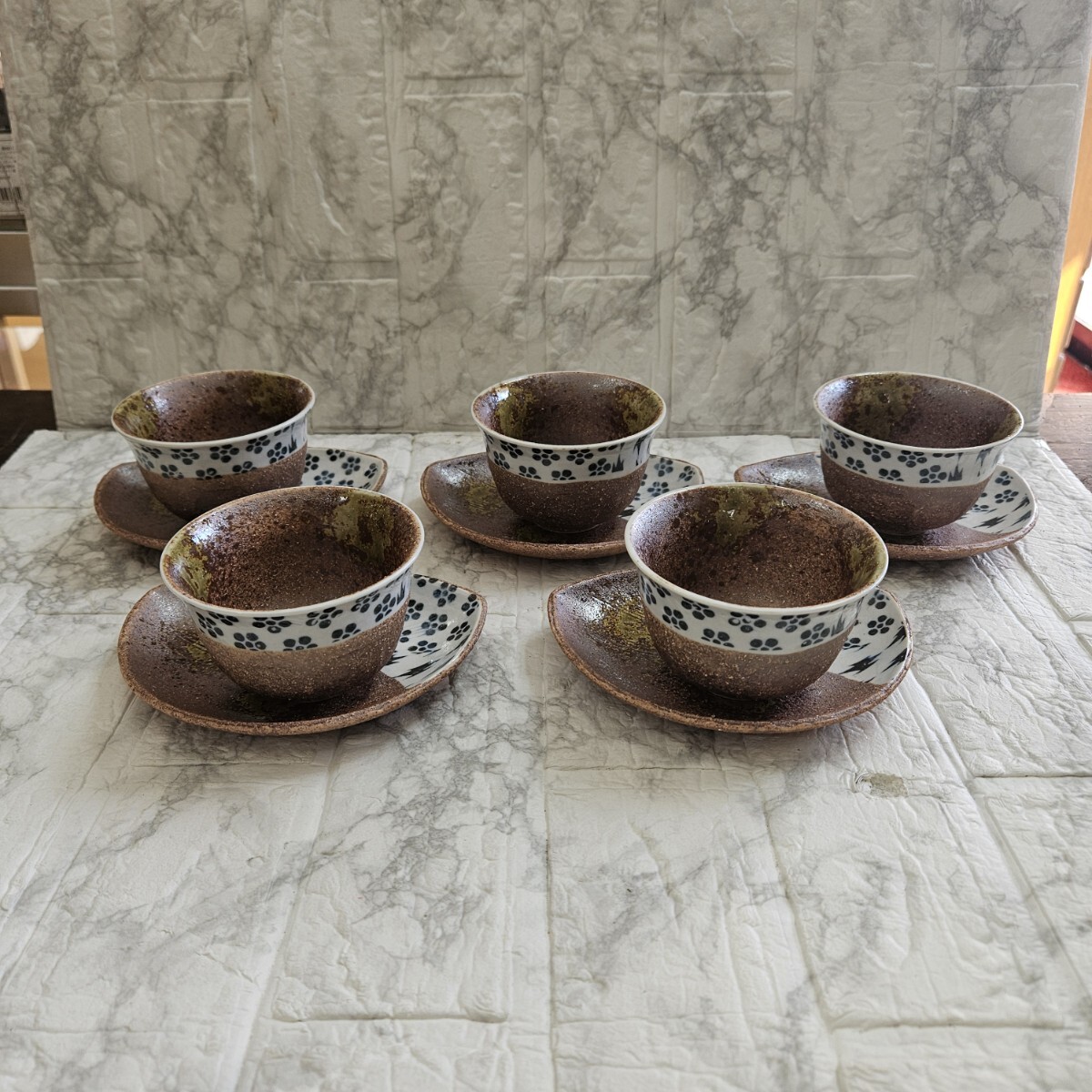 - 【未使用】湯飲み 菓子皿 5客セット 陶器 和食器 食器 コレクション