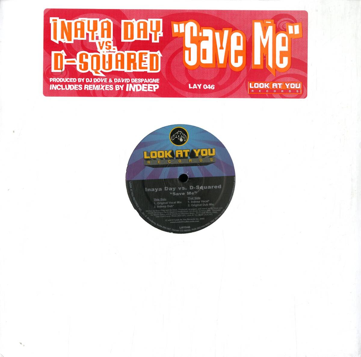 A00471432/12インチ/イナヤ・デイ vs Dスクエアード「Save Me (2003年・LAY-046・ガラージハウス・HOUSE)」