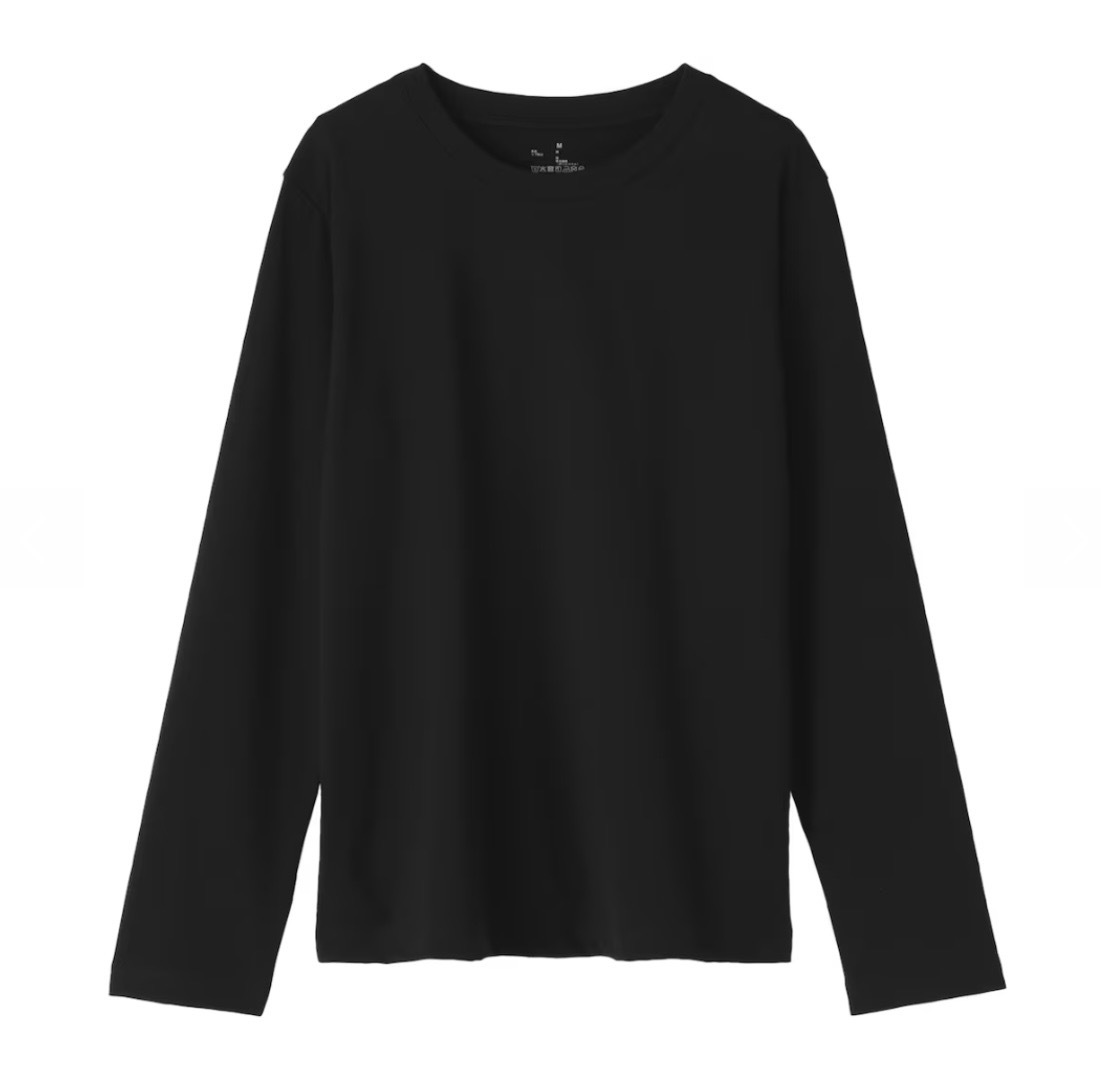 - 即決【無印良品MUJI・天竺編みクルーネック長袖Tシャツ婦人XL・黒】ブラックロンTカットソートレーナーインナー