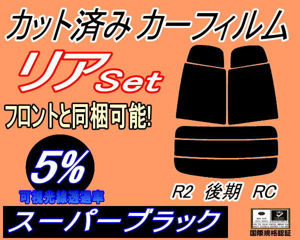 - カーフィルム スーパーブラック カット済み リアセット R2 後期 RC (s) スモーク ガラスフィルム セット リヤー サイド RC1 RC2 スバル