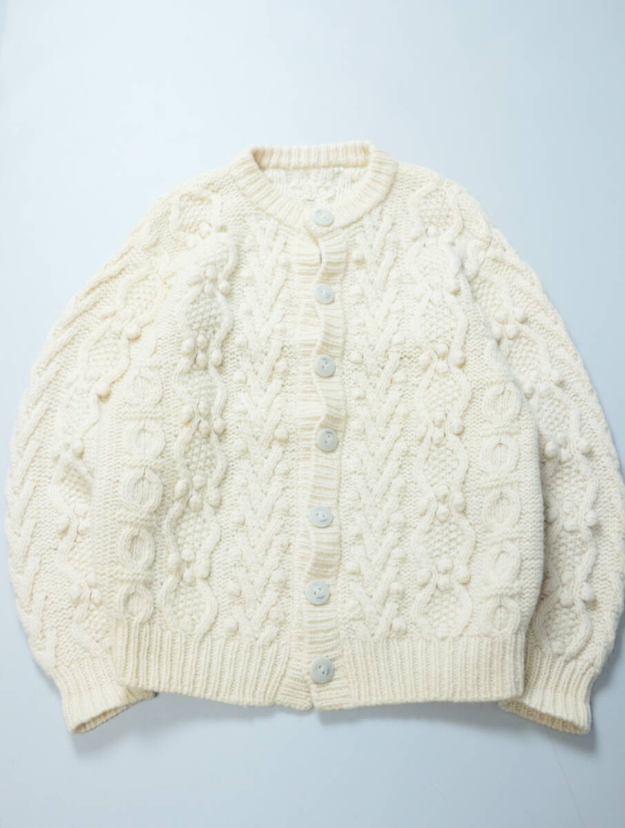 - C48/ピュアウール/デザインニットカーディガン/ケーブルニットセーター/ウールニットセーター/カーディガン/アランニット/L-XL相当