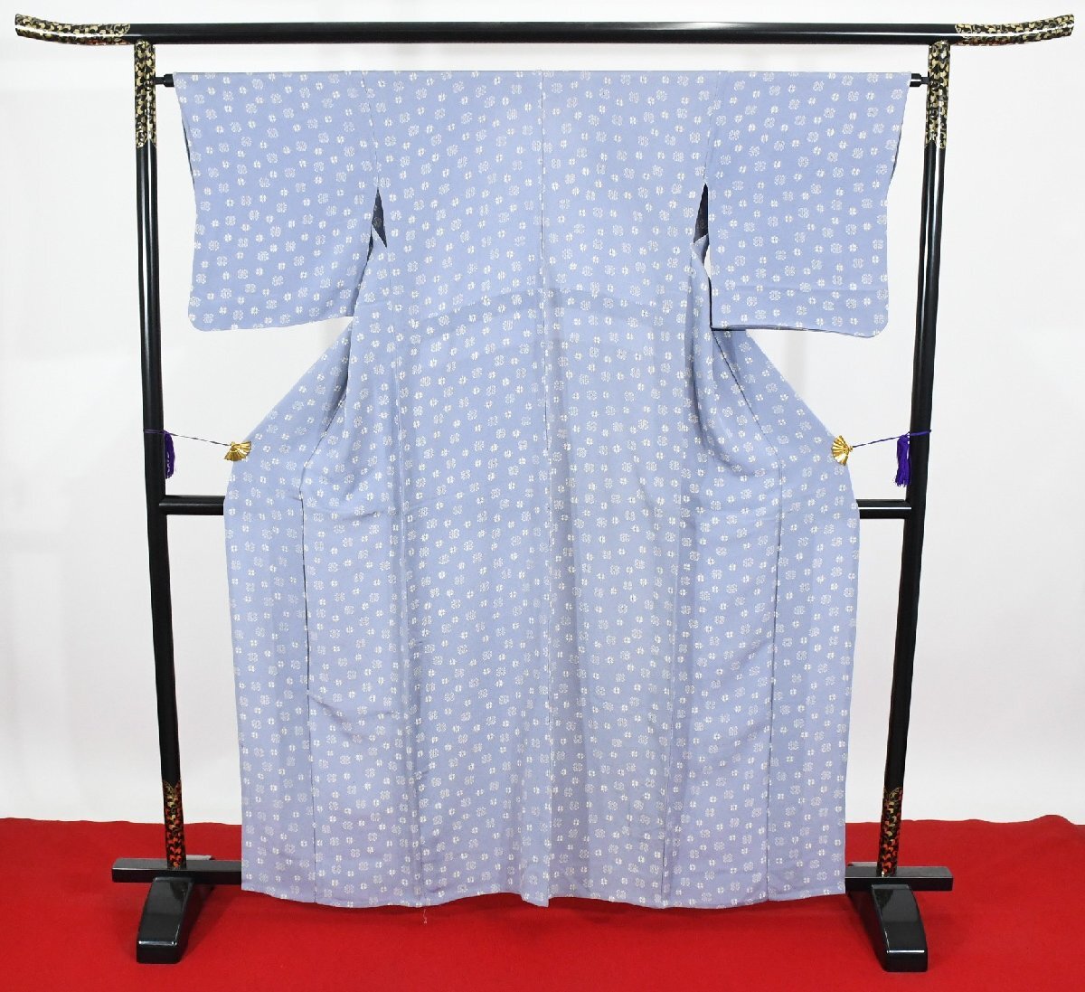 - 小紋 着物 ちりめん 単衣 勿忘草色 身丈152.5 cm 裄丈65 cm ★ kb-7538 桜庭呉服店