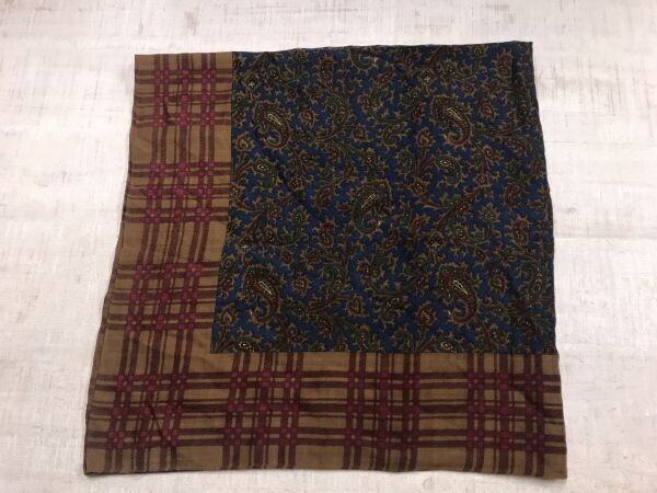 - カルバンクライン Calvin Klein レトロ モード チェック ペイズリー 大判 スカーフ レディース 紺 茶色