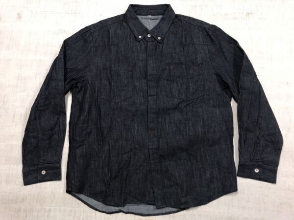 - couture ソーイングボックス 赤ステッチ 両胸ポケット ウエスタンヨーク ワーク 長袖 デニム シャツ メンズ ボタンダウン 日本製 LL 濃紺