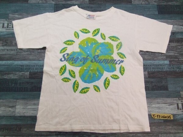 - WHISPERS レディース SING OF SUMMER ラメ フラワープリント 半袖Tシャツ M 白緑