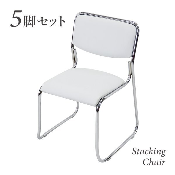 - 送料無料 ミーティングチェア 5脚セット 耐荷重150kg ホワイト 会議イス 会議椅子 スタッキングチェア パイプチェア パイプイス
