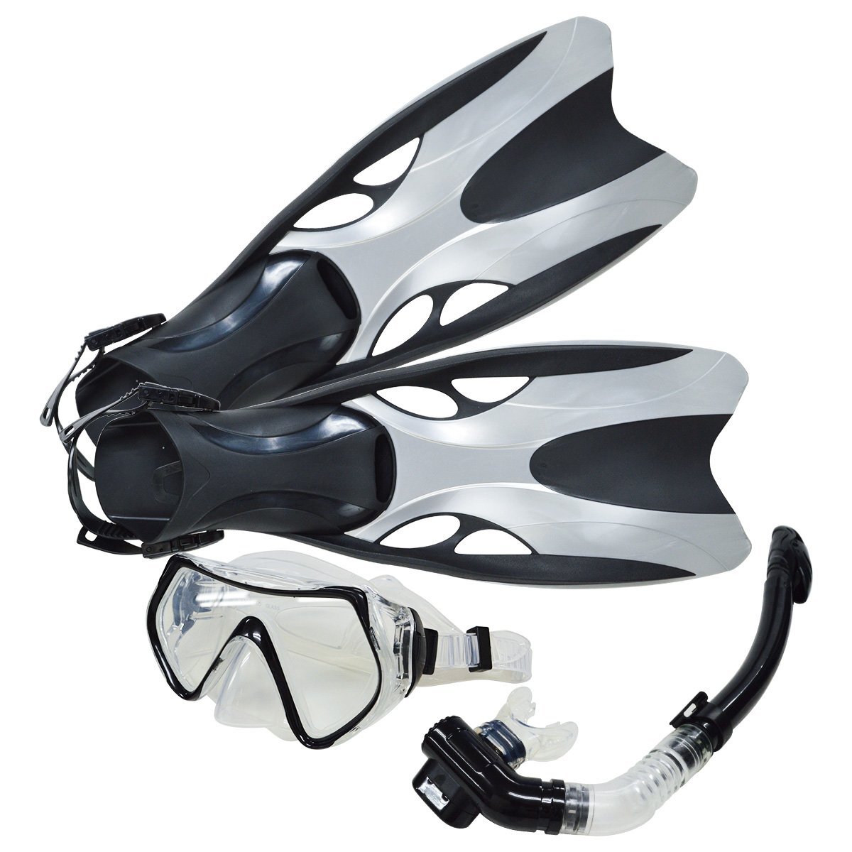 > シュノーケル3点セット 男性用 L/XLサイズ 26-28.5cm シュノーケル フィン スノーケリングセット ゴーグル 水中ゴーグル ヒレ ブラック/黒