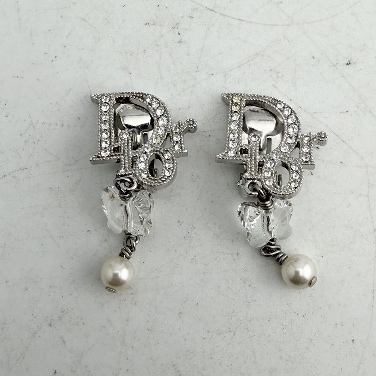 > Christian Dior クリスチャンディオール イヤリング ラインストーン ロゴ 小物【B479-s2795-4】