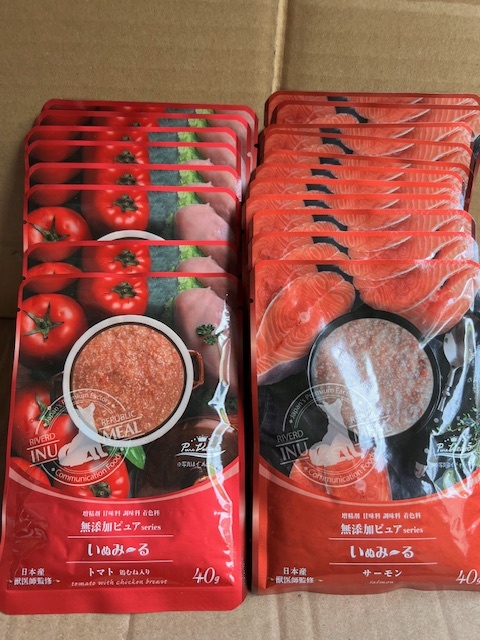 - ●40g×2種19個セット♪ 国産 リバード 無添加ピュア いぬみーる サーモン/トマト 鶏むね入り