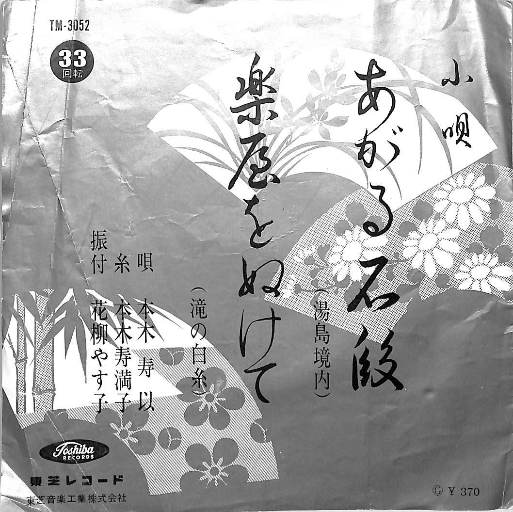 C00172025/EP1枚組-33RPM/本木寿以「あがる石段(湯島境内)/楽屋をぬけて(滝の白糸)」
