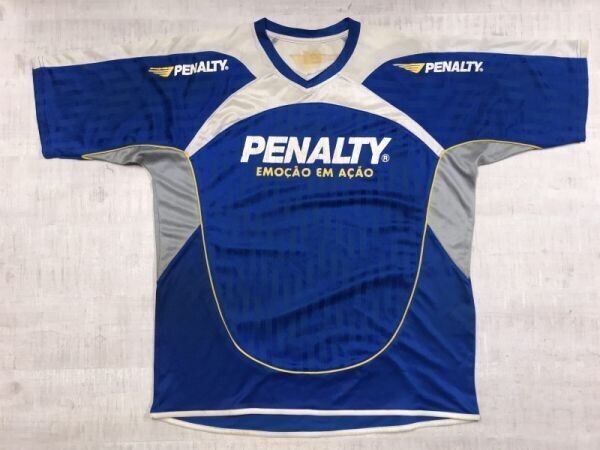 > ペナルティー PENALTY ストライプ切替 オールド サッカー CAMBUCI SA 半袖 ユニフォーム ゲームシャツ Tシャツ メンズ 青/グレー