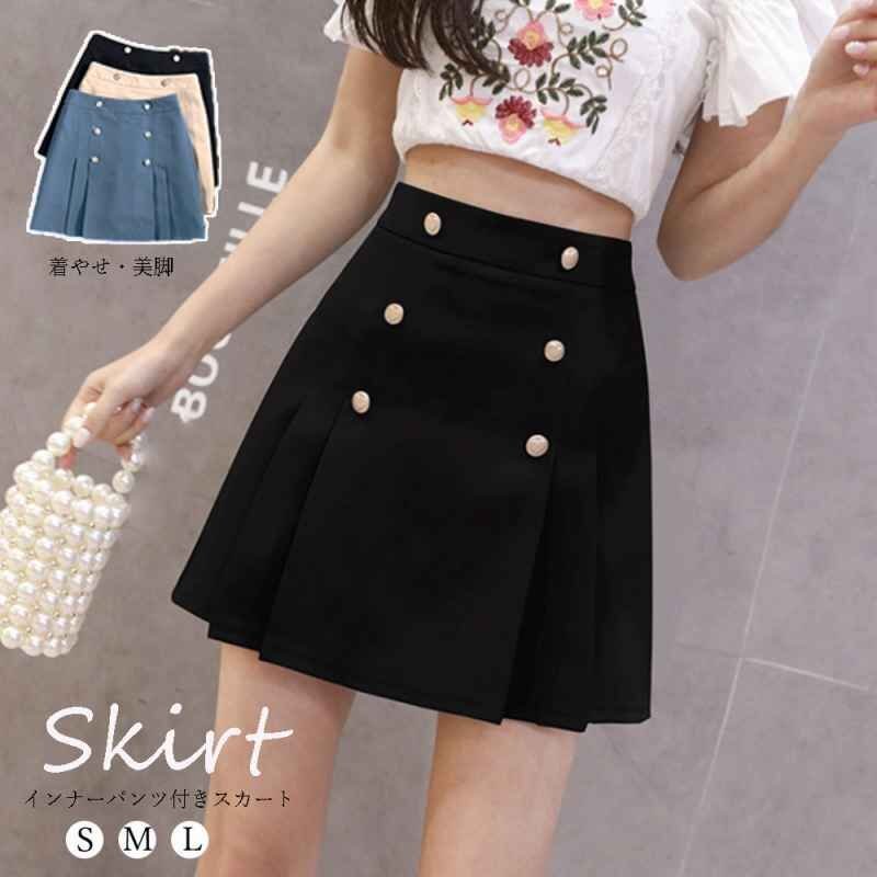 - ミニスカート プリーツ 台形スカート 美脚 L ベージュ