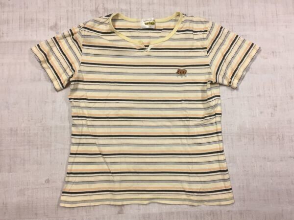 > GuGuWorld グーグーワールド マルチボーダー ワンちゃん キーネック オール ドレトロ 古着 半袖Tシャツ レディース M ベージュ