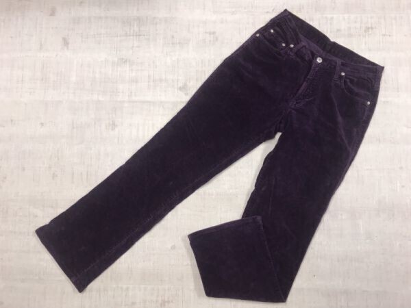 - シマロン CIMARRON レトロ モード 古着 ストレッチ 起毛素材 コーデュロイ調 ブーツカット パンツ 美脚 ボトムス レディース 紫