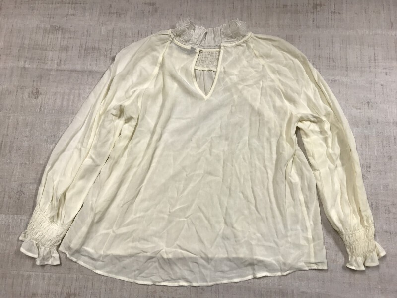 > ザラ ZARA レトロ ヒッピー ボーホー 古着 プリーツ ギャザー ブラウス 長袖シャツ レディース レーヨン100% XS オフホワイト