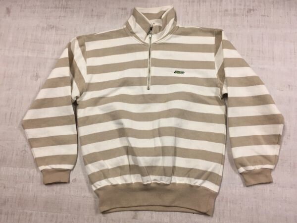 - ピコ PIKO オールド レトロ サーフ ボーダー ストリート 裏起毛 スウェット トレーナー メンズ ハーフジップ ロゴ刺繍 M 白/ベージュ