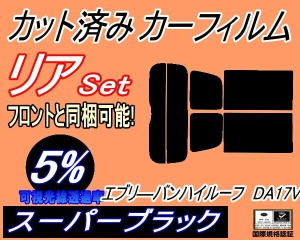 > カーフィルム スーパーブラック カット済み リアセット 17系 エブリィバン ハイルーフ DA17V (s) エブリーバン ガラスフィルム