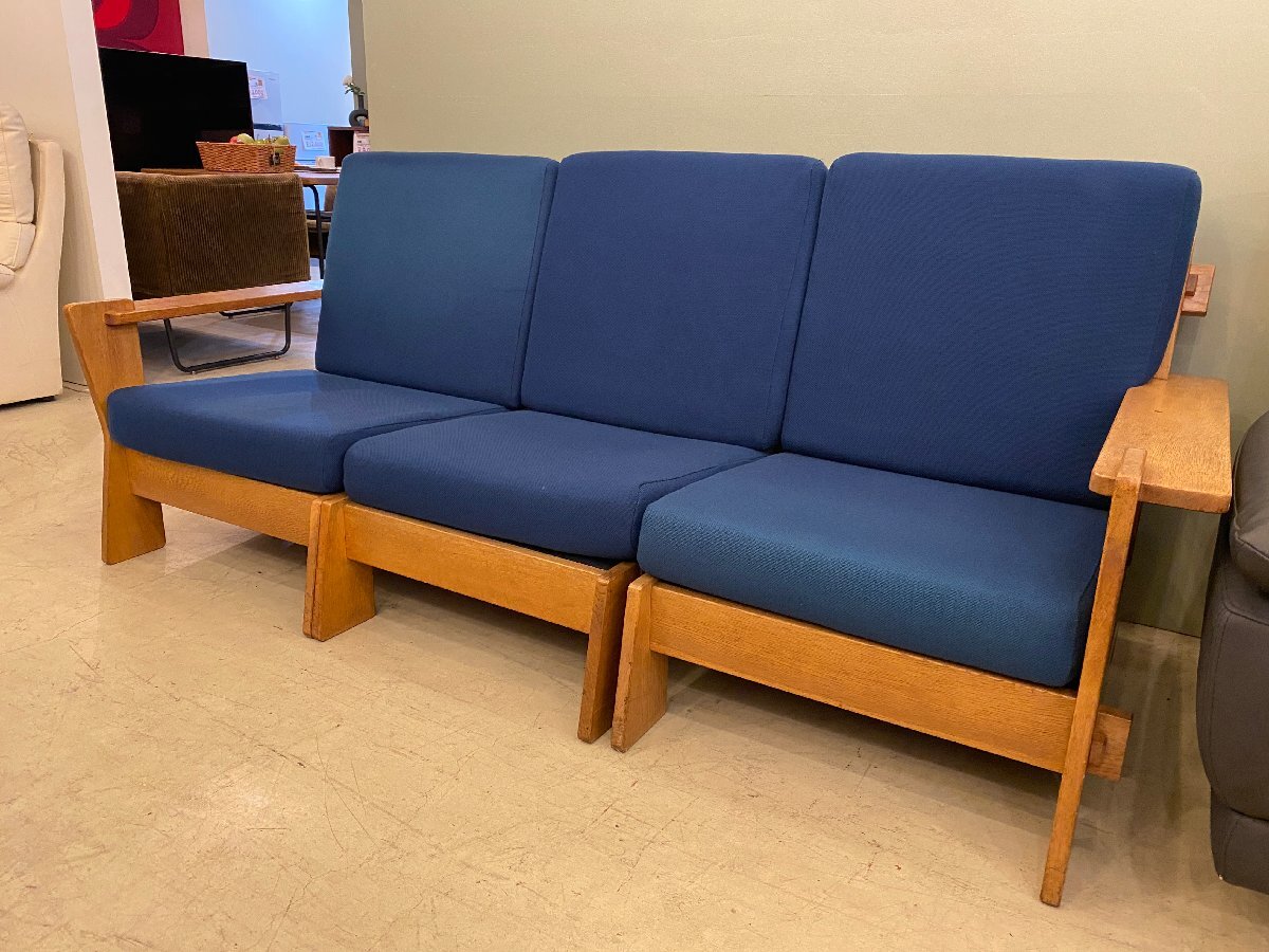 > ヴィンテージ ソファ 3シーター ネイビー ファブリック 北欧 中古品 直接引き取り大歓迎