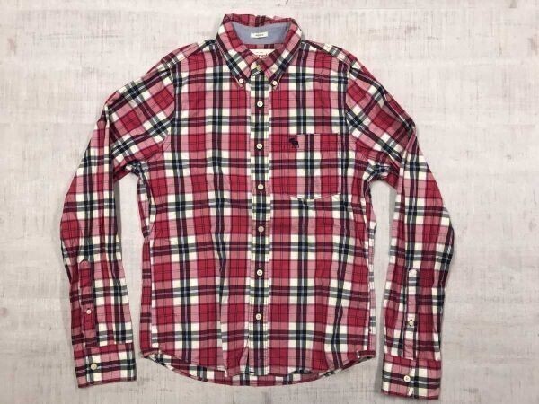> アバクロンビー&フィッチ Abercrombie&Fitch アバクロ アメカジ チェック ボタンダウン 長袖シャツ メンズ コットン100% L 赤