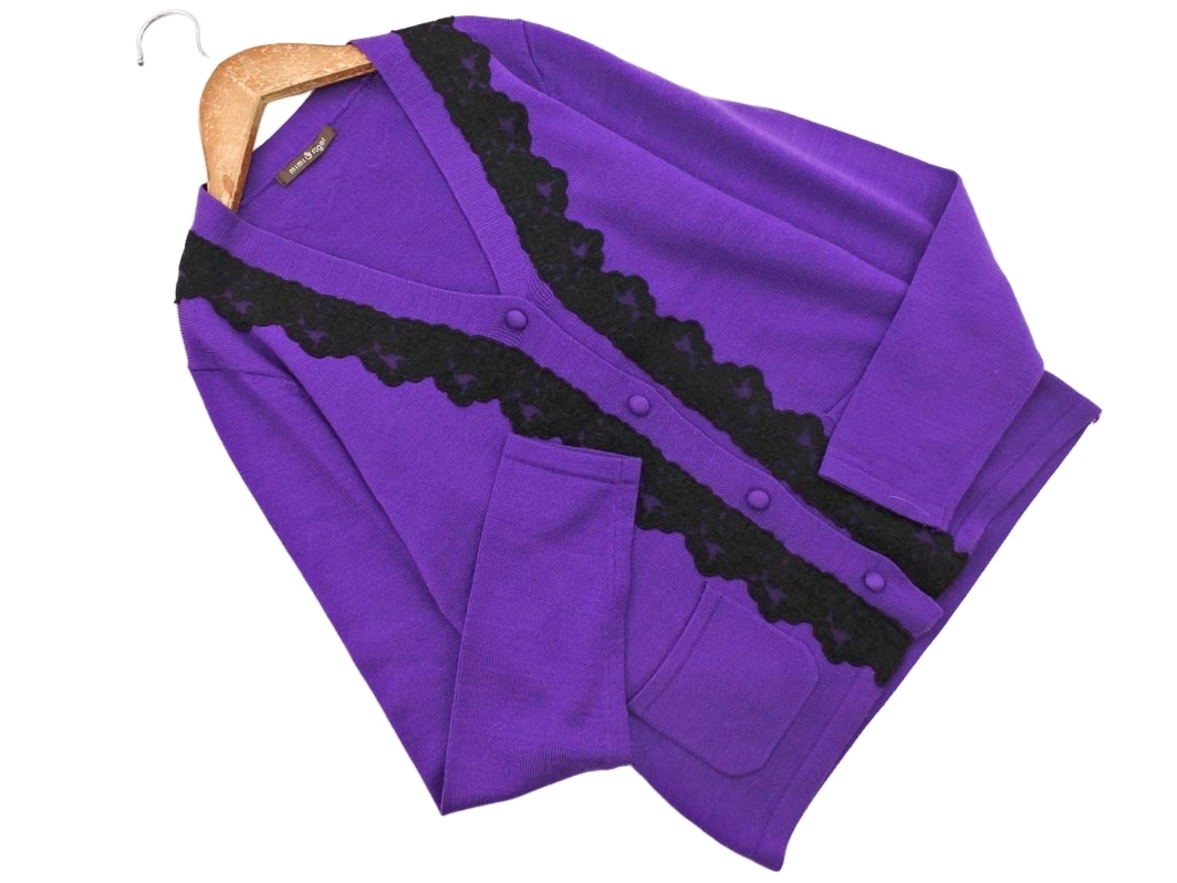 > mimi&roger ミミアンドロジャー ウール混 Vネック カーディガン sizeO/紫 ◇■ ☆ fjd0 レディース