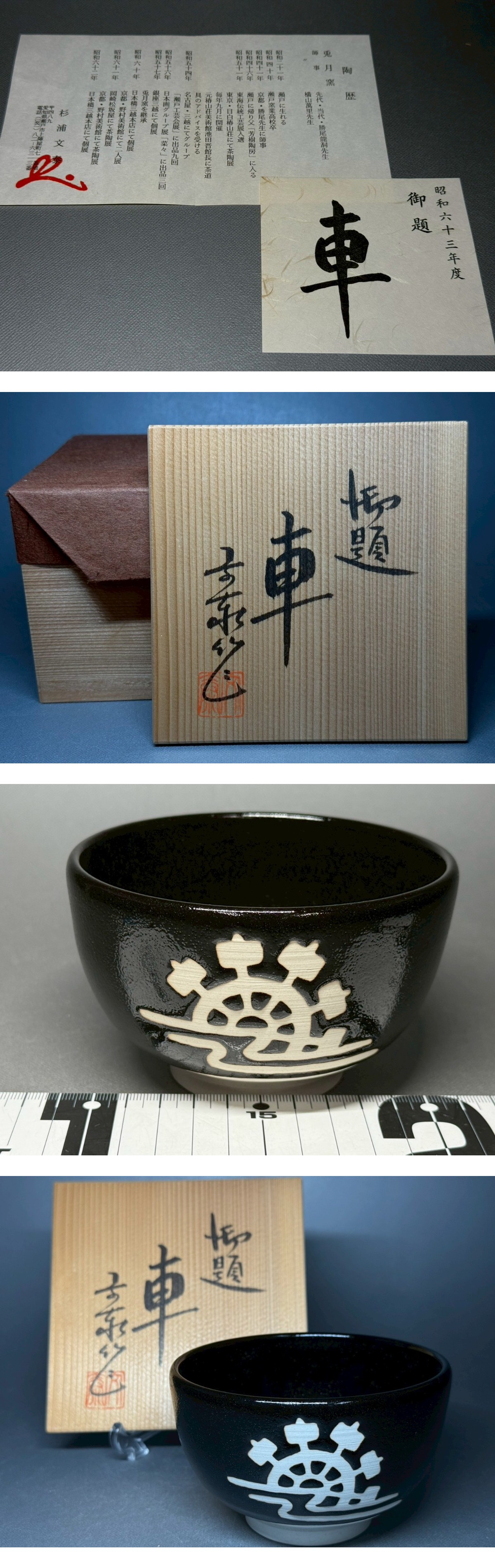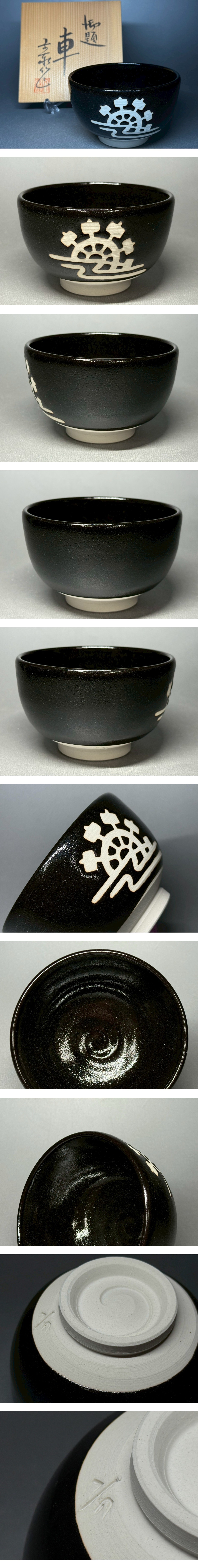 - 杉浦文泰作 兎月窯 御題 車 茶碗 抹茶碗 骨董 置物 飾物 日本伝統工芸品 芸術 古美術 時代物 在銘 落款 売切 茶道具 食器 和 瀬戸62