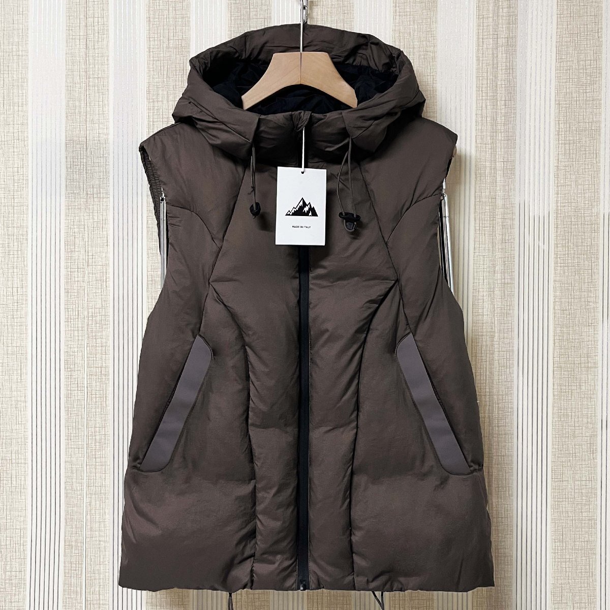 > ダウンベスト イタリア製造 ダックダウン90% 防寒対策 暖かい ふわふわ ソフト フード付き 袖なし アウター 通学 カジュアル 冬服 SIZE:XL