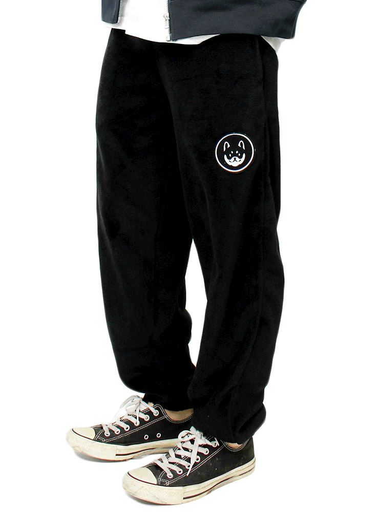> 【新品】 LL ブラック 和んこ堂 もこもこ ボア フリースパンツ メンズ 京都発祥 ゆるキャラ プリント わんこ堂 イージーパンツ