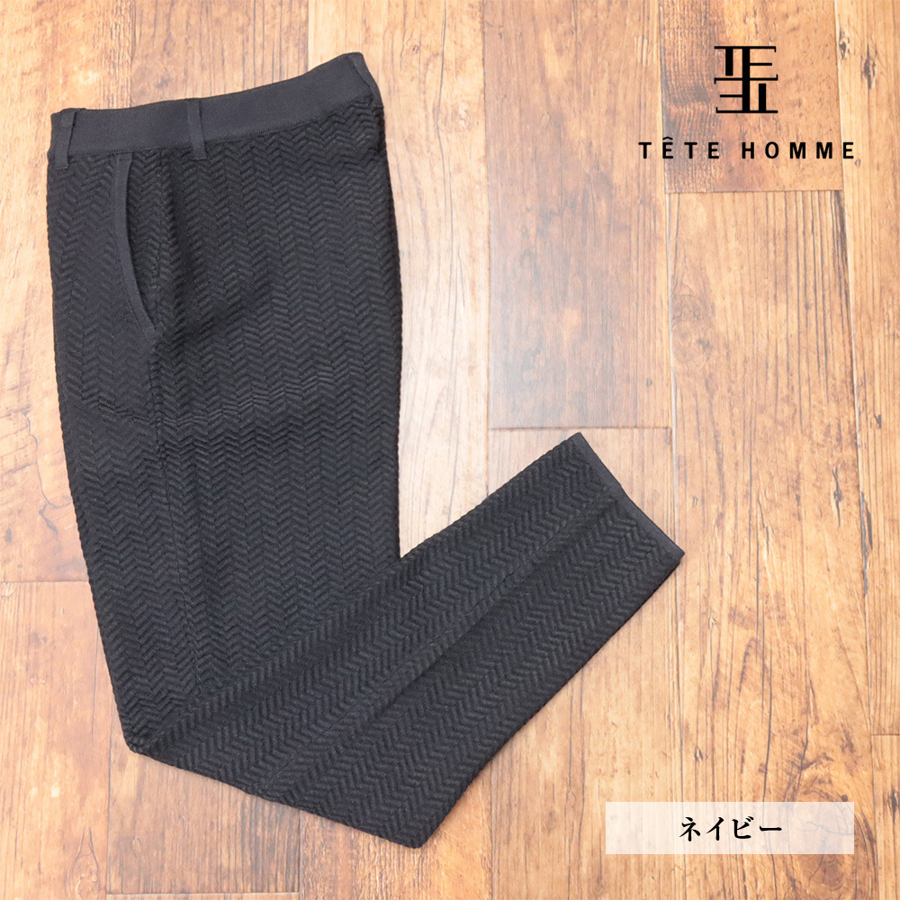 - 1円/24秋冬/TETE HOMME/Mサイズ/ニットパンツ 1024573031 ヘリンボーン グラフェン 保温 抗菌 防臭 リラックス 新品/紺/ネイビー/ma465/
