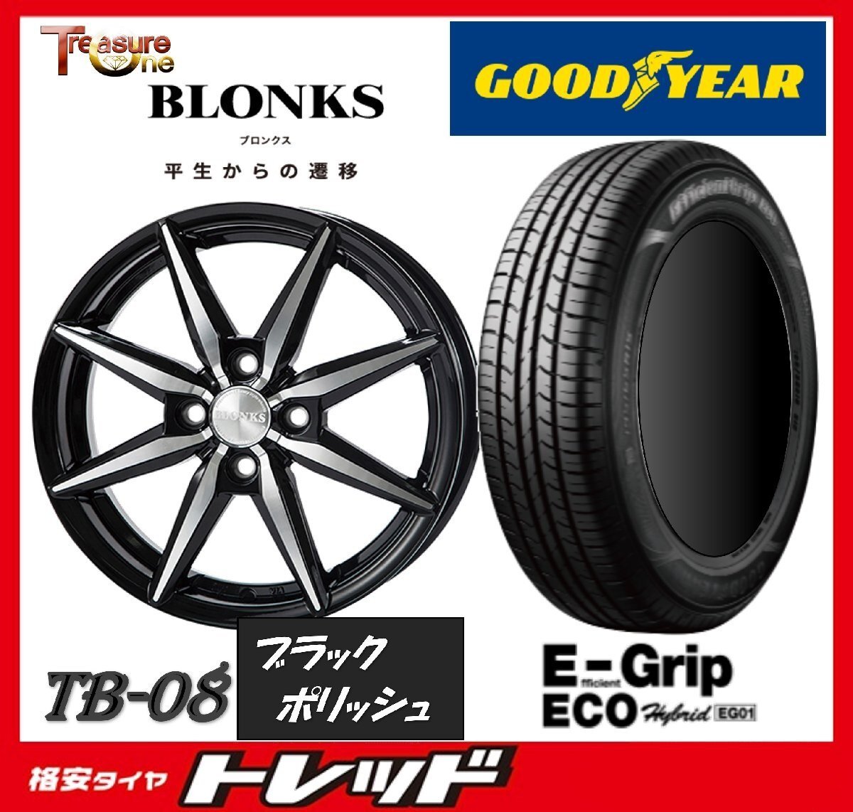 > 数量限定 2023年製)新横浜師岡店 新品タイヤアルミ4本set ブロンクス TB-08 14インチ4.5J4穴100+45 グッドイヤー EG01 165/65R14