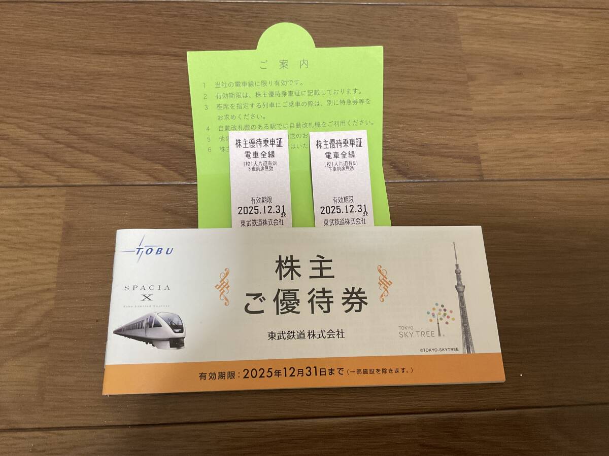 > 【匿名配送無料】東武鉄道 乗車証 (電車全線)×2枚 株主ご優待券×1冊セット 有効期限2025年12月31日迄